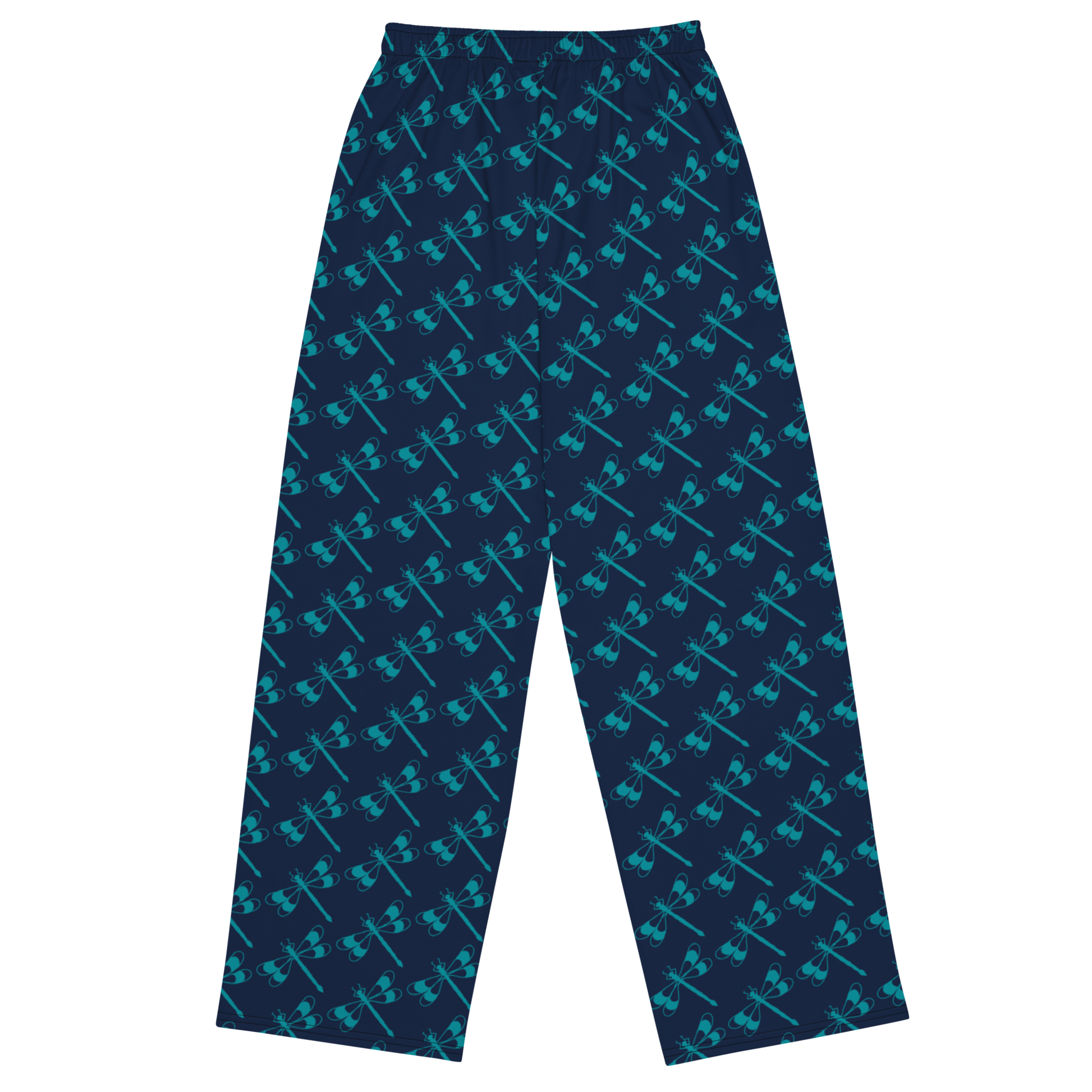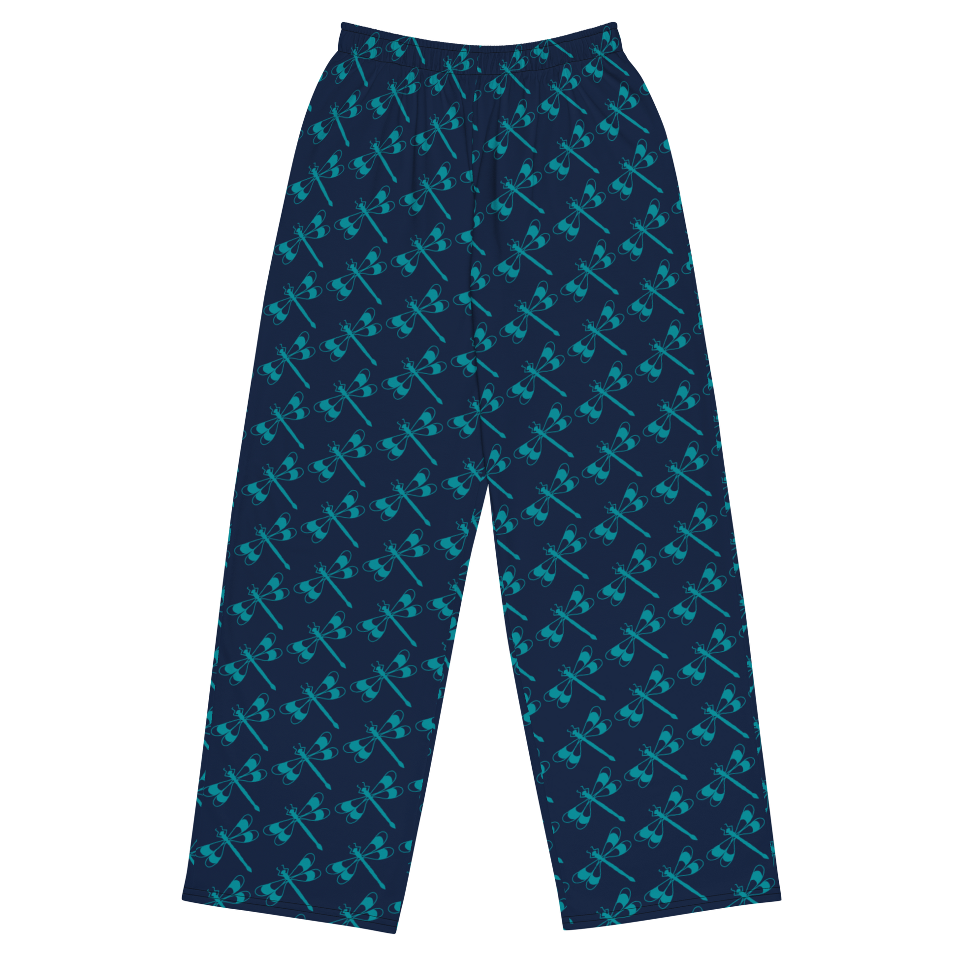 Dragonfly Dream Unisex All-Over Wide Leg Pants – Midnight Blue & Celestial Insects
