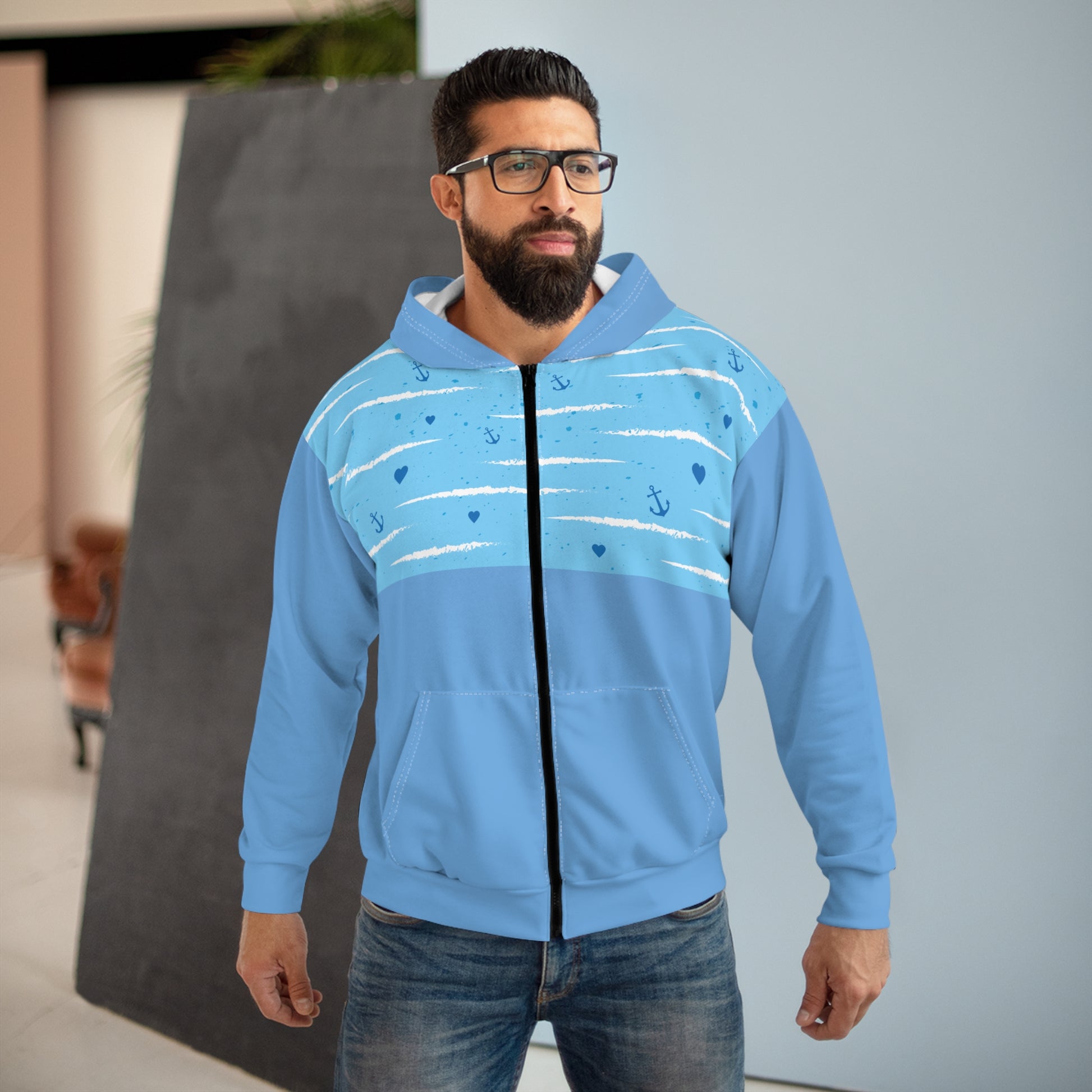 Ocean-Inspired Unisex Zip Hoodie, Nautical Apparel