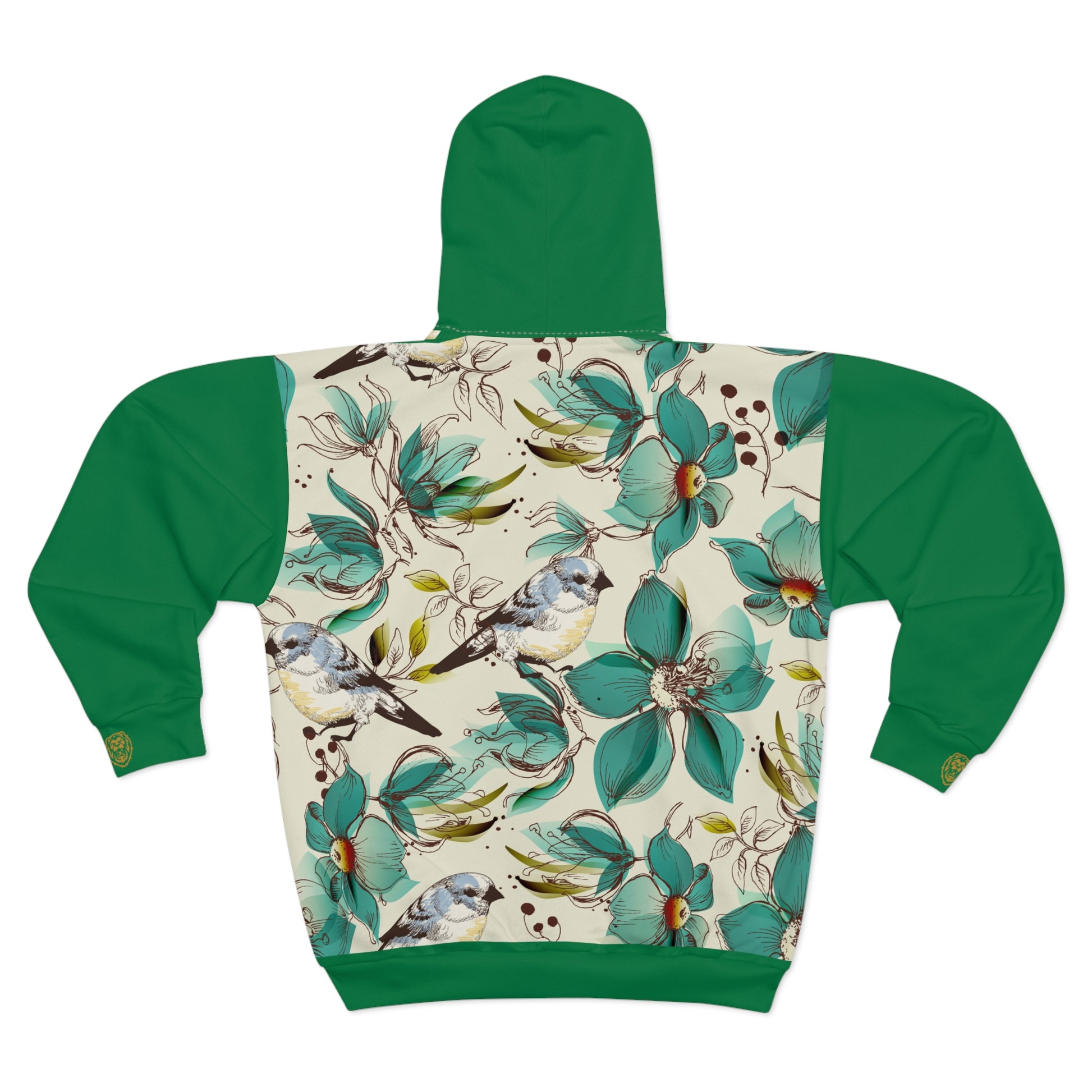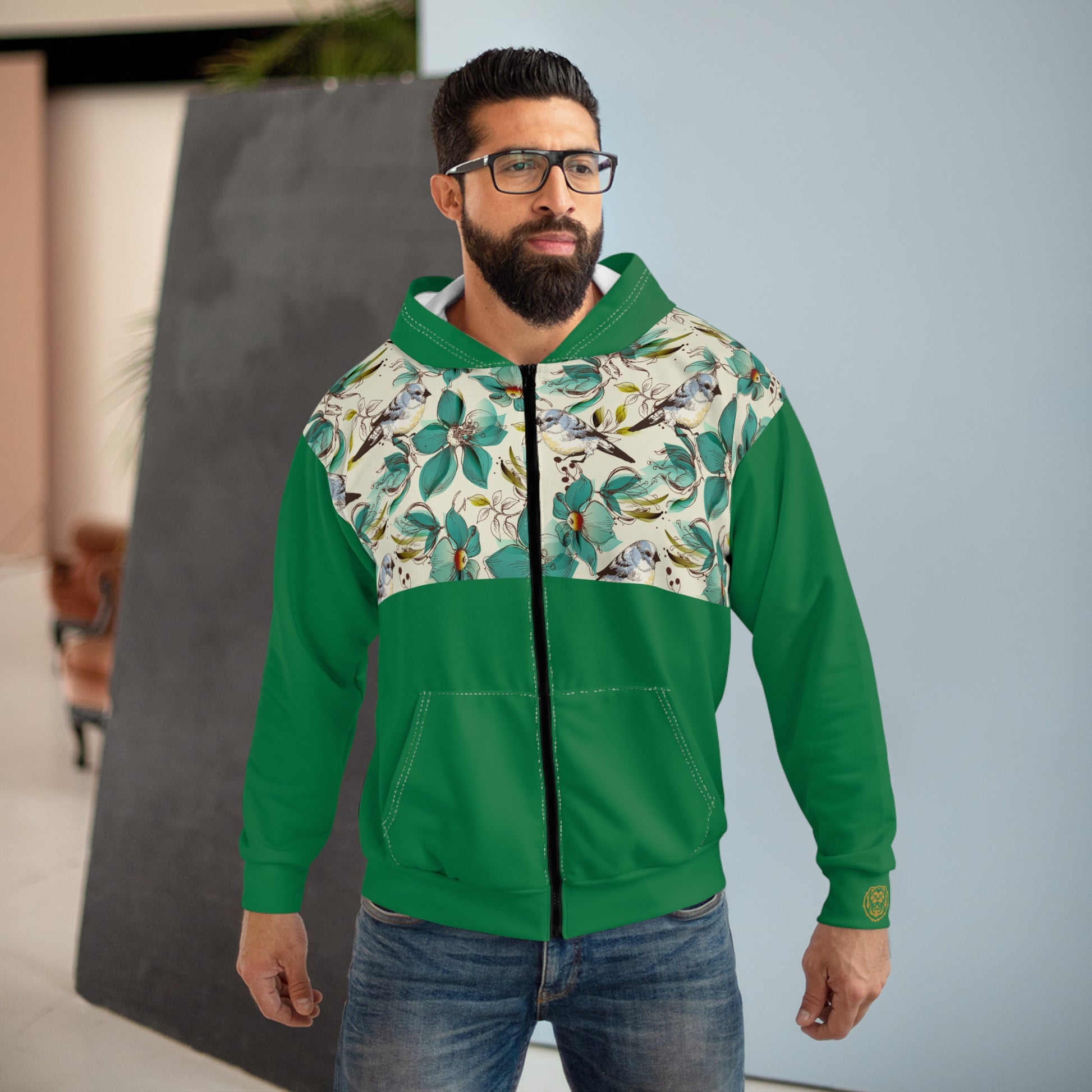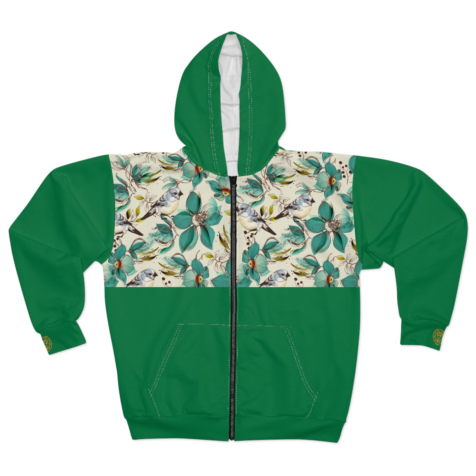 Unisex Zip Hoodie Bird Garden” – Vert botanique