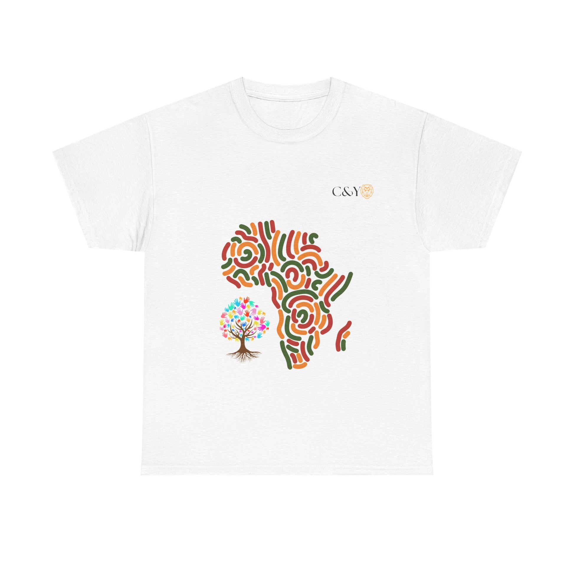 T-shirt unisexe “African Culture” en coton épais – Motif d’arbre coloré, style ethnique vibrant